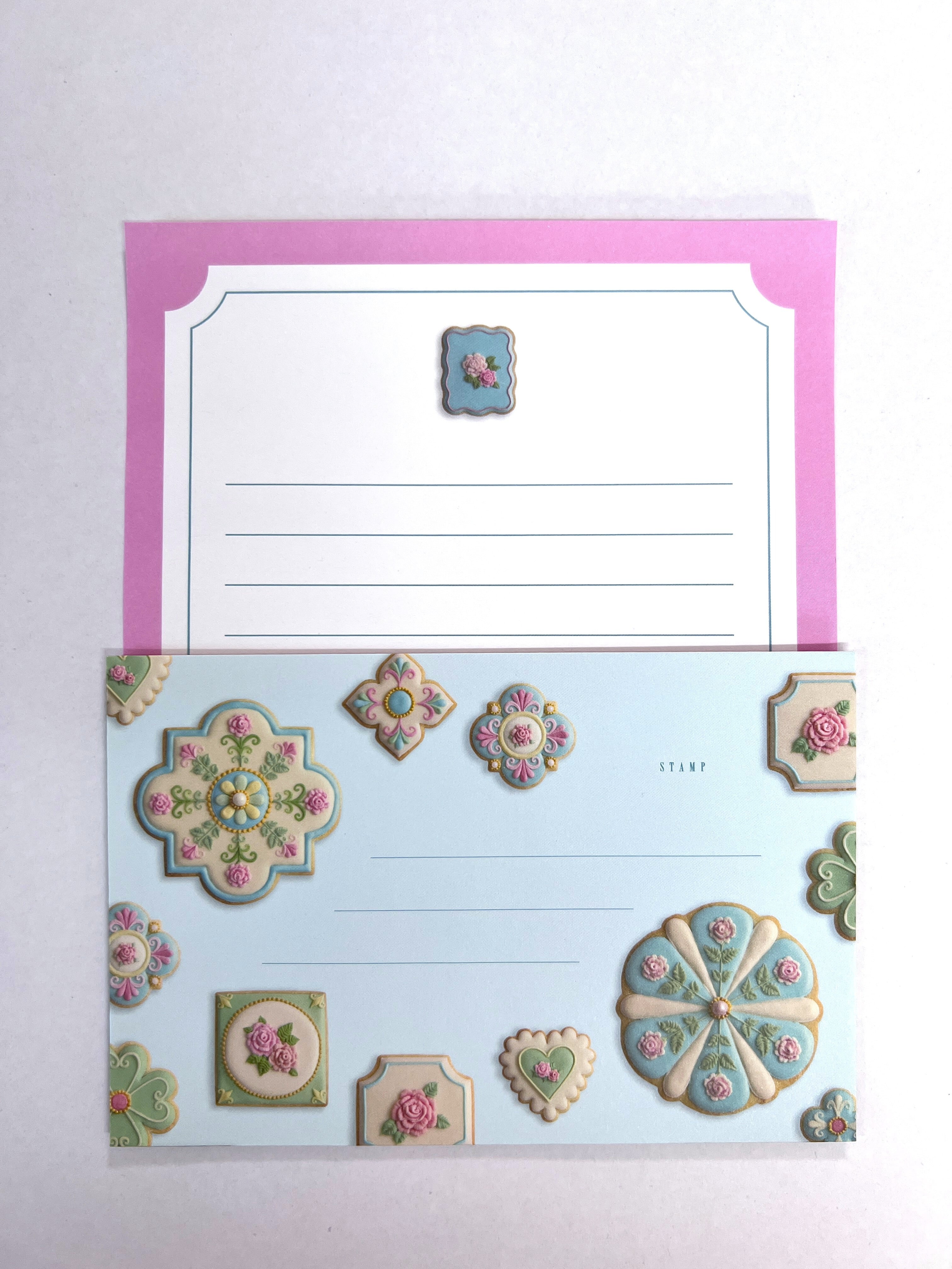 レターセットは花ごとに異なるカラーリングとクッキーのデザインを取り入れた金色の封シールがポイントです。